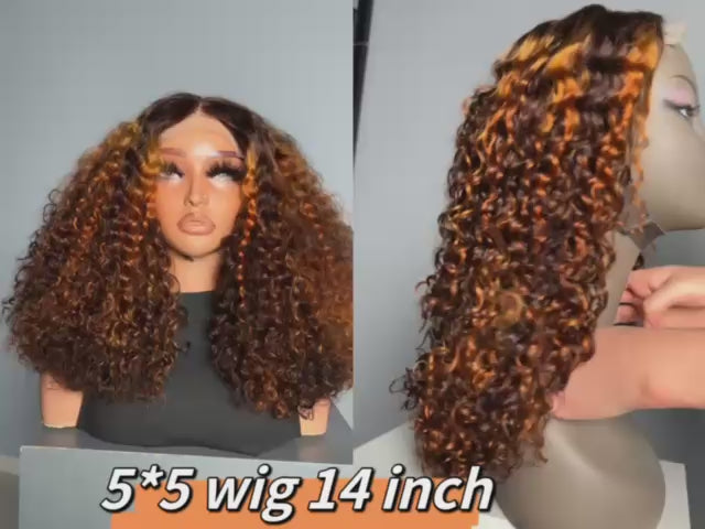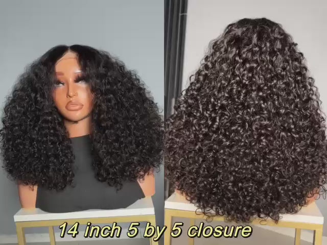 - Human hair SDD water curly, 14 inches, 5×5 HD closure wig